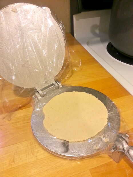 8. cierre y lentamente abrir la prensa para tortillas. Saque la masa aplanada.