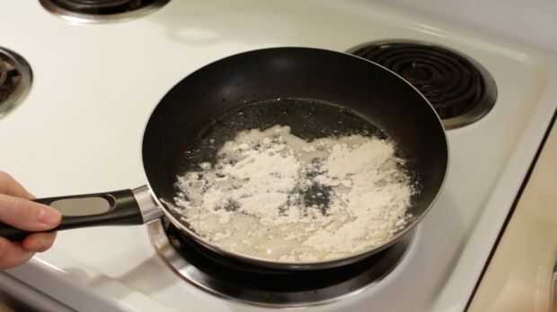 Ahora baje el calor a medio y añadir la harina a la grasa de tocino, hacer la calle. Asegúrese de remover todo.