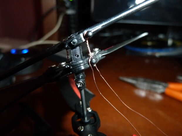 Gire hasta que el último twits golpea la parte superior de la articulación inferior cuando el estabilizador y el rotor son nivel.