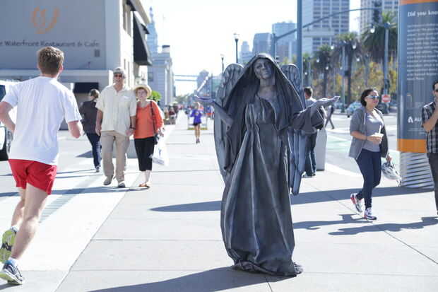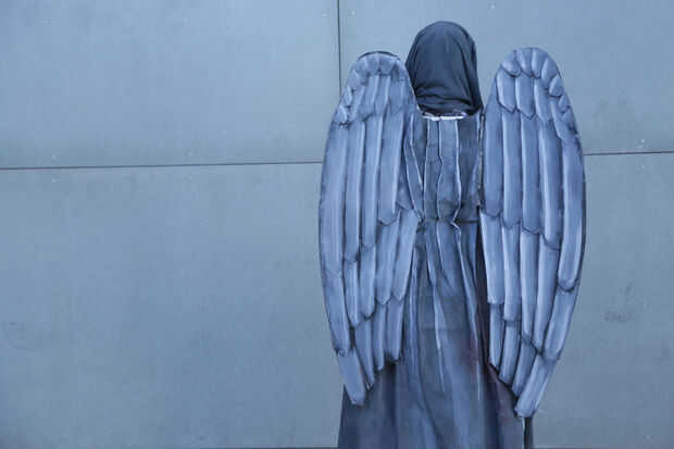 Principalmente se hace de espuma, en lugar de plumas. Esto es así se puede pintar y tiene un aspecto liso. La suavidad de ellos fueron esenciales para mí puesto que estas alas eran parte de un disfraz de Ángel de cementerio, por lo que es necesario mirar como piedra.