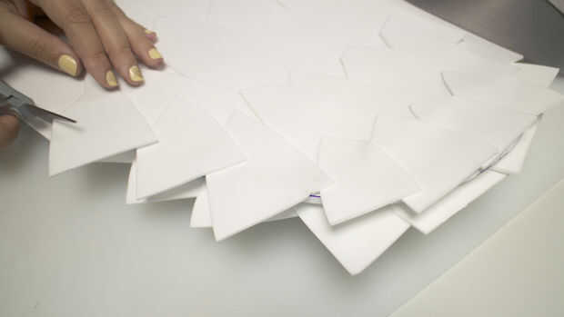 Una vez han recortado hasta la medida del borde exterior del grosor de tus alas. Éstos resultaron para ser unos 5/8" de espesor. Cortar algunas tiras en este ancho de la espuma de 2mm y pegar alrededor de los bordes para ocultar las capas múltiples.