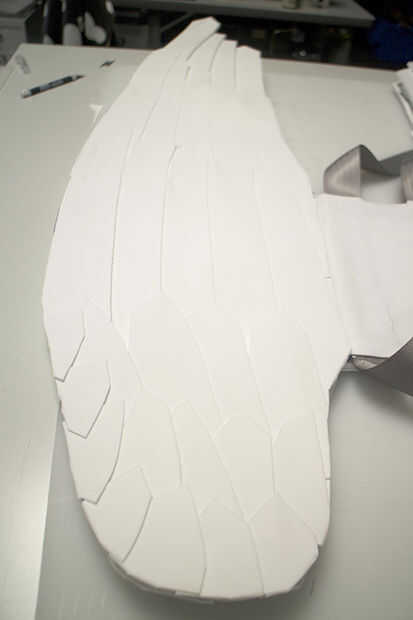 Puede que desee recorte de espuma adicional que cuelgue la forma original de ala distancia. Ahora que miro las fotos, los voladizos bastante aseados y podrían agregar una mirada pluma a las alas.