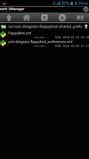 Ahora vaya a la raíz del teléfono y encontrar /data/data/com.dotgears.plaffybird