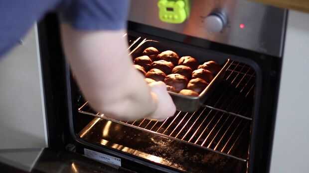 Pre calentar el horno a 180 º c (ventilador) y hornear el pan durante 10 minutos y luego, reducir la temperatura a 160 grados centígrados (ventilador) durante 15 minutos. Mientras que de cocción continuar con la preparación de la ganache de chocolate y glaseado.