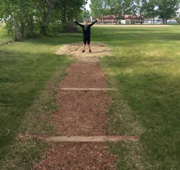 Acercándose a la fosa, hay tres líneas, usted comenzará su salto en la línea media.