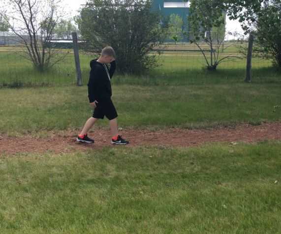 Ir hasta el final de la zona (no la parte de arena) e Inicio su funcionamiento lento (jog) y cuando golpeas el marcador debe estar en completa sprint (rápido).
