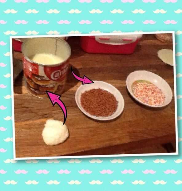 Añadir después decoraciones, póngalo en leche condensada si no pegajosa. Luego ponerlos en su rociado sobre una placa de