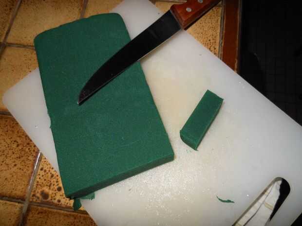 Use el cuchillo para cortar la espuma para colocar en el contenedor e introducirlo dentro.