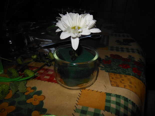 que nos mantiene realmente espuma floral alrededor? Bueno, menos de nosotros serían si supiéramos cuánto flores como beber de las patatas. Esta no es mi idea - se remonta décadas - pero funciona muy bien.Materiales:1 patata2. dulce flores3. placa4. p