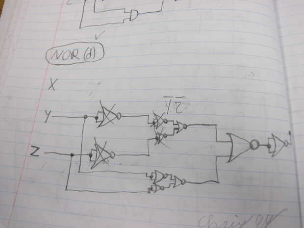 Ahora que se han acercado tus circuitos en AOI puede más fácilmente dibujarles NAND o ni si elige, puede dejar algunos en AOI así. Recuerde que debe hacer por lo menos dos circuitos NAND y NOR en dos. Se muestra un ejemplo.