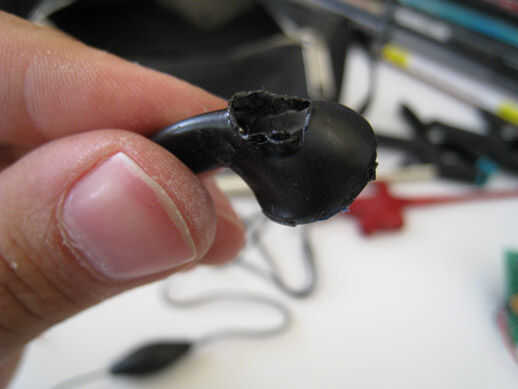 No te olvides de cortar el plomo en el tamaño correcto, para evitar la sorpresa de un plomo pegado en su canal auditivo...: s