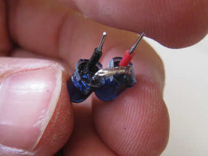 Ahora, quitar el par de emisores de los auriculares y soldar el cable.