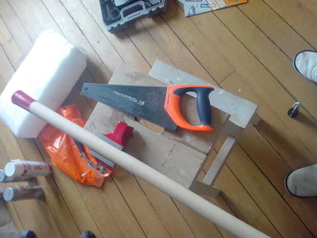 Para construirla, corté el mango de un pico (9€) a la buena longitud.