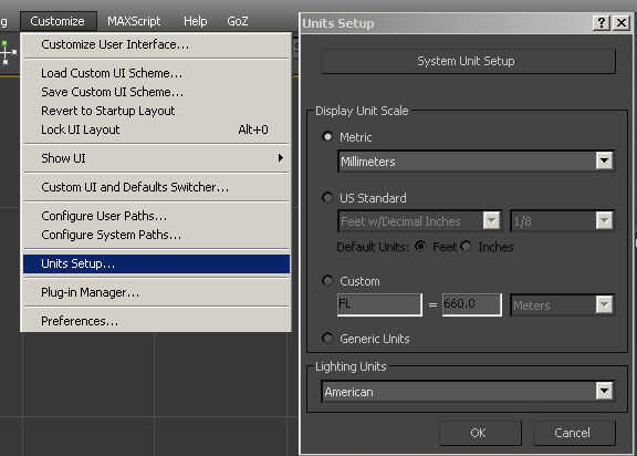 Antes de empezar con el modelado 3d, asegúrese de que ha configurado las medidas en lo que programa usas. Ya que estoy utilizando 3ds Max, voy a ir a: