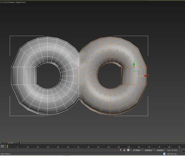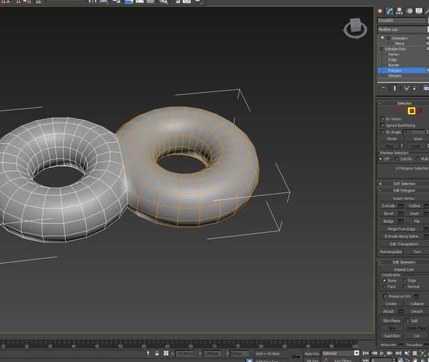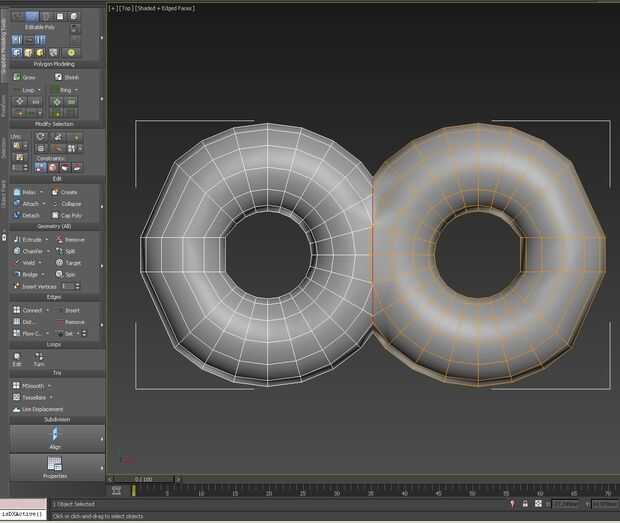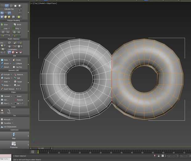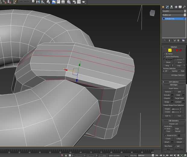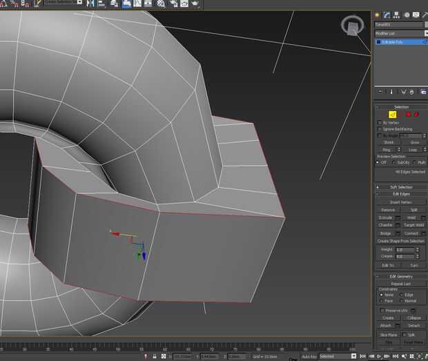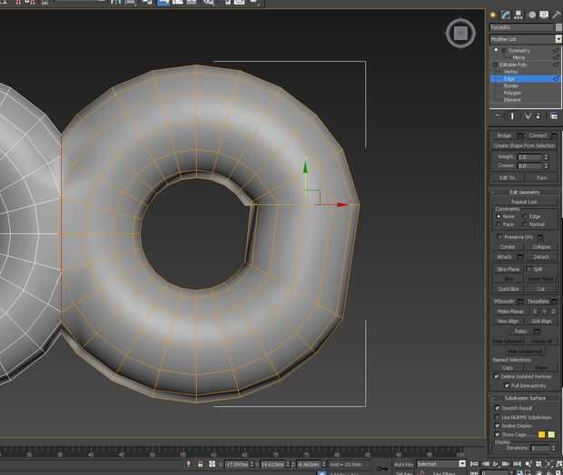 Ahora vaya a Editable Poly y seleccione el borde. Seleccione los bordes del bisel (ver ejemplo) y haga clic en lazo. Ir a editar bordes > chaflán y editar la cantidad de achaflanar borde a 1mm y conectar segmentos de borde a 4.