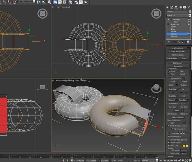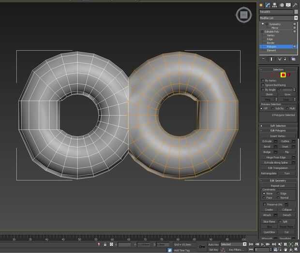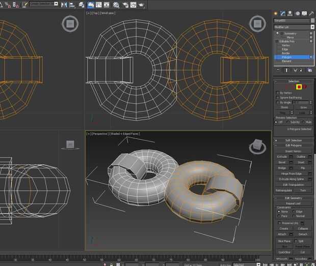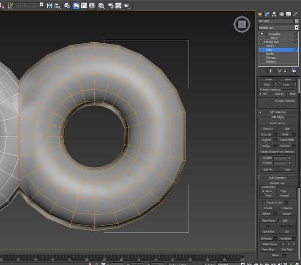 Simetría, haga clic en + junto a Editable Poly y seleccione borde.