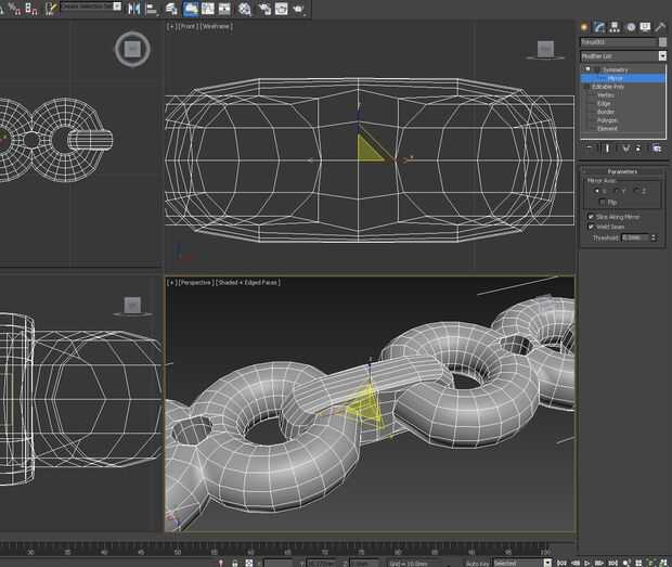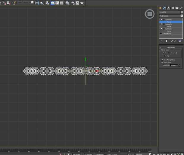Añadir de simetría al modelo nuevo. Esta vez, va a cambiar los parámetros. Cambiar el eje de espejo espejo seleccionar y y pulse la tecla W para activar la herramienta mover. Mueva el objeto reflejado hacia abajo un poco para crear la parte inferior de la mitad de la banda.