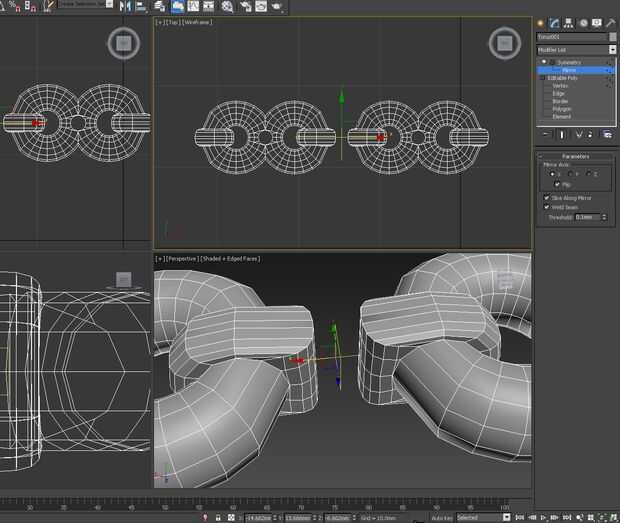Añadir simetría al modelo 3 veces, esto creará 16 lazos. Ajuste el centro del espejo según sea necesario. Haga clic en simetría y contraer todo.