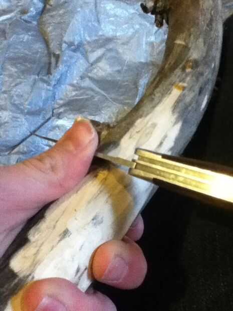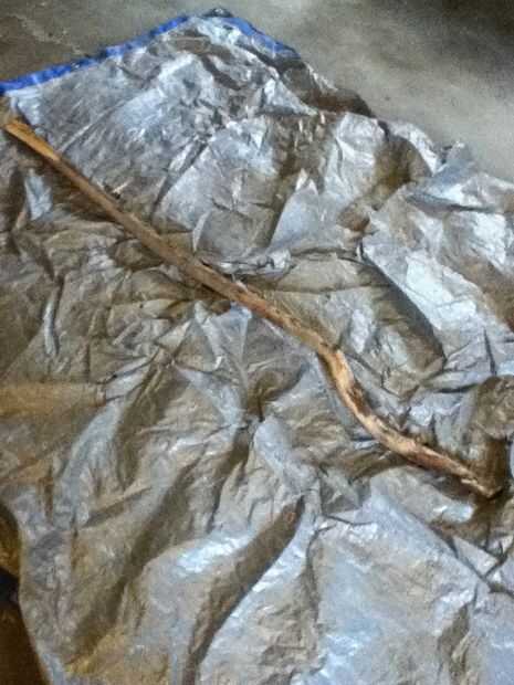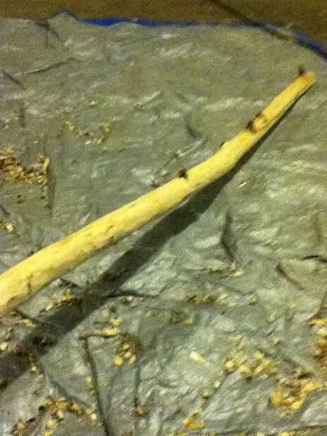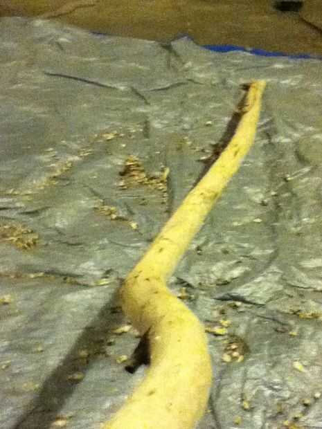 Esto es donde el palo verde viene muy bien. Utilice su cuchillo y presione con el pulgar, como se muestra. Si es verde la corteza todo saldrá en una tira grande, si es seca como la mía, sólo tendrás que tomar un poco más. Seguir la veta de la madera y trabajar alrededor de los nudos hacia arriba y hacia abajo con su cuchillo, tenga cuidado que no soy responsable de cualquier lesión. Una vez que lo tienes afeitado, tire de la sierra y corte protuberantes nudos ni ramas que no desea. No te preocupes si parece áspero, se tratará en el siguiente paso. Oh, y si su memoria es verde, una vez que te afeitas completamente lo déjelo reposar una o dos semanas hasta que se seca y marrón.