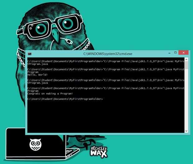 4. tipo "\java MyFirstProgram" para ejecutar el programa.