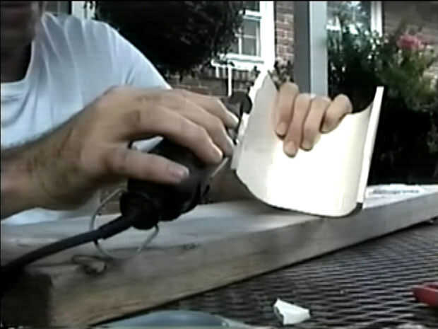 Una vez se haya enfriado el PVC, utilice dibujos plantillas de la armadura de la rodilla y un marcador para dibujar el diseño general de la armadura de la rodilla para cortar. Utilice la plantilla en una fotocopiadora para ampliar al tamaño deseado. A continuación, utilice una herramienta de corte de Dremel para quitar pedazos grandes y una broca de fresadora para trabajo fino.