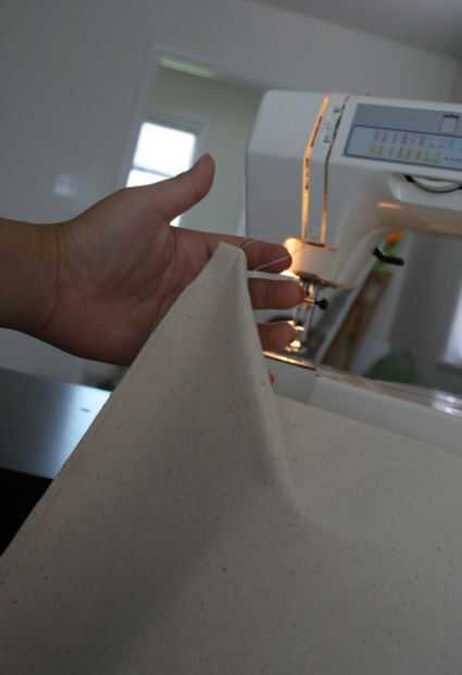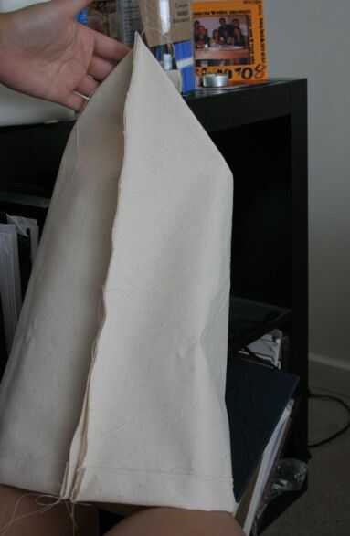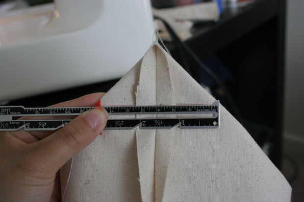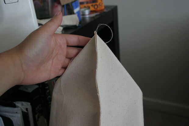 Coser alrededor de 3" a través de las esquinas. Repita el procedimiento en la otra esquina de la parte inferior de la bolsa.