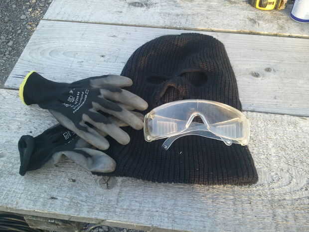 Porque, más que probable que va a utilizar sierras y taladros la seguridad es una necesidad. Usé un pasamontañas (no podía encontrar mi máscara), guantes y gafas para protegerme de las chispas y bordes de metal afilados después fue cortado. No puedo recalcarlo suficiente seguridad es importante. también ver que los pantalones de chispas pueden ser sorprendentemente inflamables.