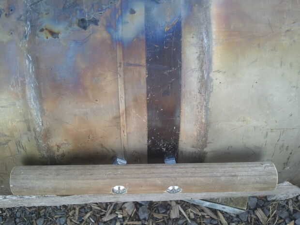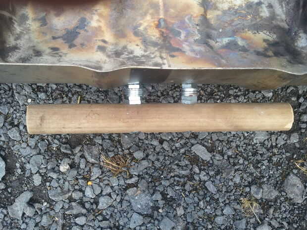 no se puede utilizar cualquier cosa que se va a quemar o calentarse cuando los fuegos pasando usé el mango de una vieja pala y sólo cortan a la medida. Había agregada la manija con unas tuercas extras y el contador hundido las cabezas de los pernos por lo que se de en medio.