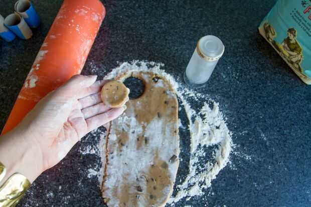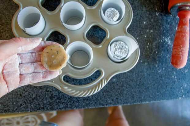 Use un vaso real para hacer un círculo para la parte inferior de la galleta de vidrio de tiro, el uso del aluminio papel-corcho-enchufe para romper todos juntos. Enderezar el borde superior con el dedo si se pone torcido. No se fije mientras hornea.