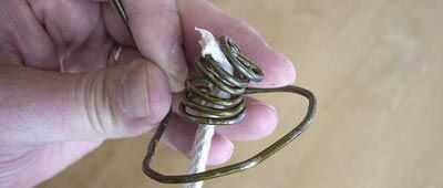 Con alicates, levante uno aparte de los vientos superiores de la bobina de mecha para que la mecha se deslizará a través como se muestra.