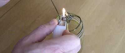 Después de que la mecha es absorbida completamente, encender el pabilo. Usted notará que el aceite de oliva es no casi como fácilmente inflamable como los combustibles de petróleo y tomará más tiempo a la luz. Este hecho asegura que si se derrama la mezcla, el aceite sí mismo no se encenderá como otros aceites.