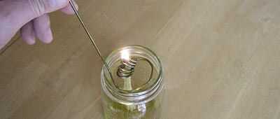 Inserte el conjunto de mecha llameante en el tarro para que el material extra de la mecha es sentarse y sumergirse en el aceite de oliva.