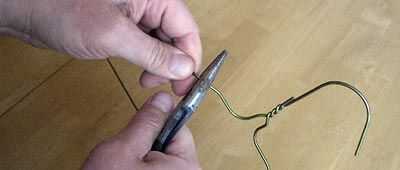 Agarrar los alicates para el alambre de metal de la percha y gire hacia adelante y hacia atrás hasta que encaje el alambre.