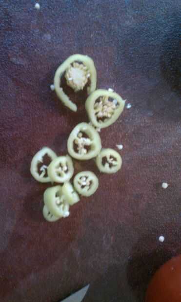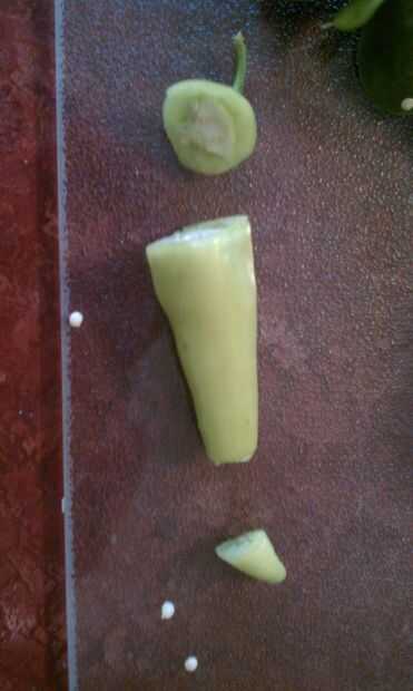 A continuación, cortar el pimiento en discos
