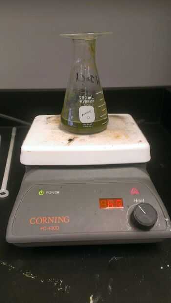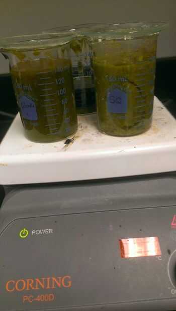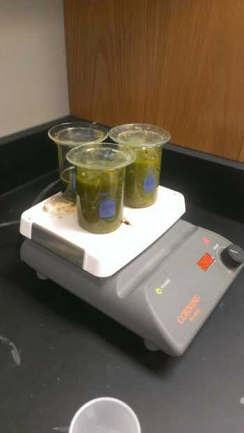 Verter la solución de algas microondas en un recipiente rubbermaid y entonces para cada solución de algas de 4 partes, agregar 1 parte de isopropanol (alcohol va a hacer, mayor será la concentración la mejor, pero el 70-99% es lo que uso)