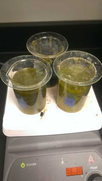 -debe llegar muy gruesa y mirada verde y slimey, mezclado con cantidades variables de amarillo/marrón aceite delicuescentes. Se sentirá grasa entre los dedos. Esto es bueno. no será una tonelada de petróleo. Va a ser crudo (espesor, contiene los restos de células de algas, que está bien)