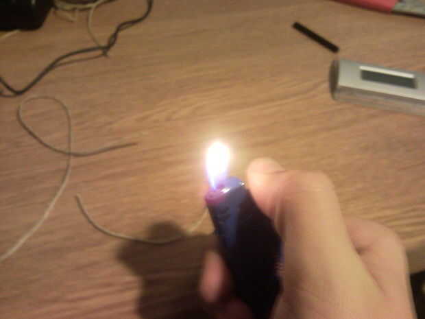 Quemar las puntas de la pieza cortada en el paso anterior para hacerlo pasar a través del orificio del dispositivo más fácil