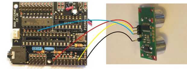 Y conectar el srf05 para el picaxe y ejecute este código: