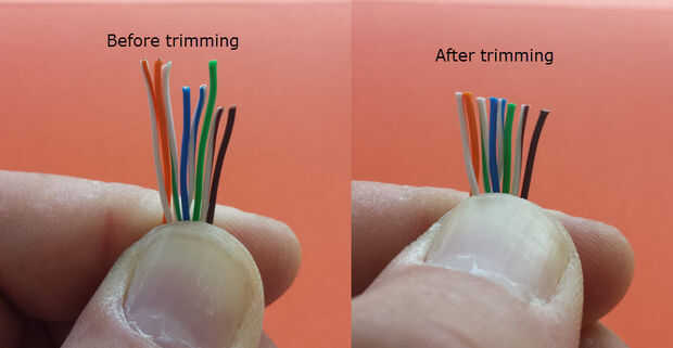 Una vez que estés satisfecho que los cables son rectos, utilice el cortador de cable y cortar los cables teniendo sólo media pulgada y asegúrese de que los cortes rectos.