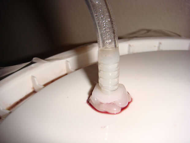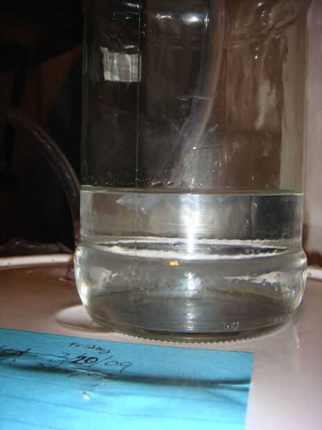Esto es bastante autoexplicativo, llenar el tarro sobre a mitad de camino con agua y coloque el tubo por debajo del nivel de agua para que el CO2 puede escapar de su barco pero no volverá (debido a la barrera de agua). Encontré que cerca el tubo es al nivel del agua (estando aún por debajo de ella) el silencioso ruido burbujeante.