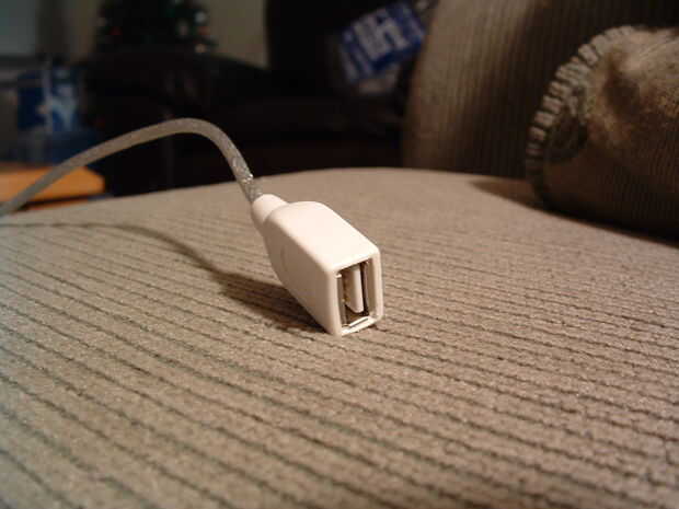 Paso 3: corte femenino extremo del USB del enchufe en el cable de extensión USB, dejando cerca de 8 pulgadas o menos para dar lugar a error y aliviar el estrés físico en sus empalmes de la soldadura.