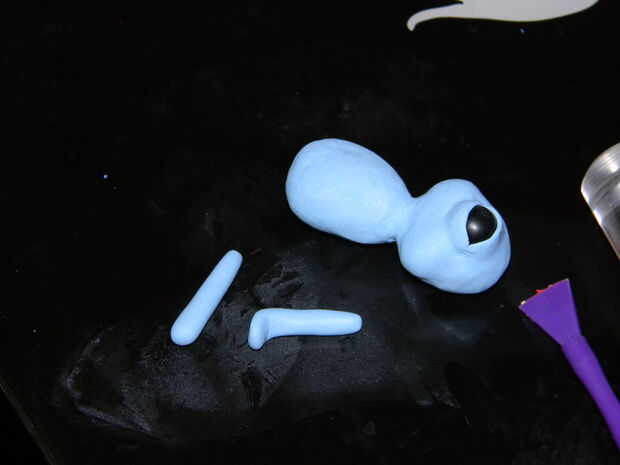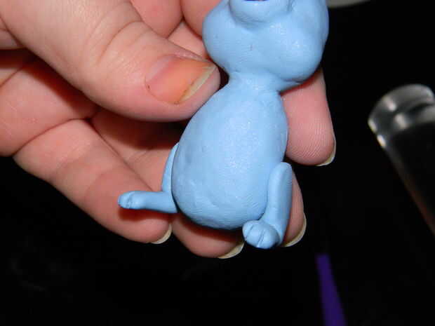 Ahora esto no es en la foto pero la mejor cosa que hacer ahora es tomar su segunda bola de arcilla y separar en tres bolas más pequeñas. Uno de ellos se utilizará para los brazos, el segundo para las piernas y el tercero para la boca orejas y cola. Esto es importante para que no terminen no tener suficiente arcilla para algo que te necesita.