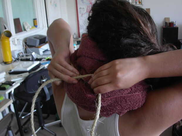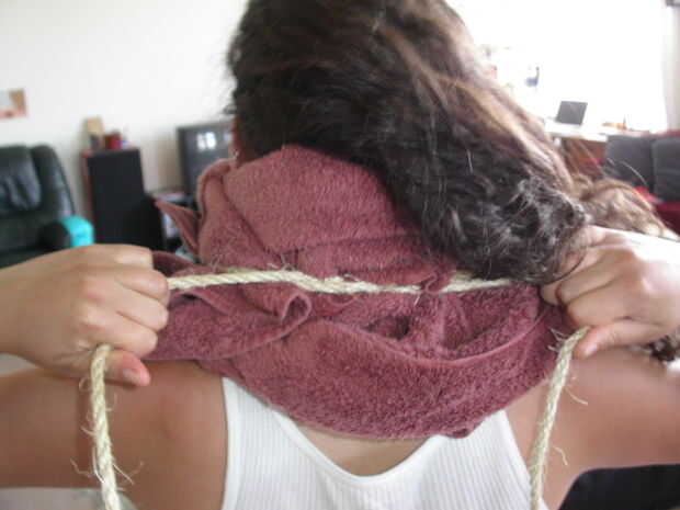 Envolver la cuerda alrededor de su cuello firmemente - se desea que el apoyo, pero no tan fuertemente que usted corte oxígeno o sangre flujo.