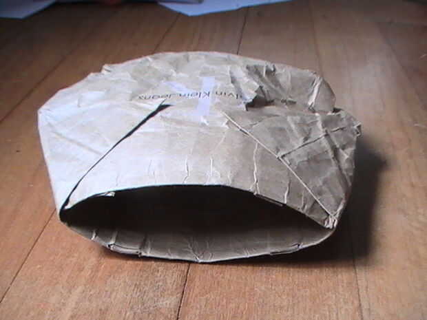 En primer lugar machacar su bolso machacado en la forma que desee y en segundo lugar cambiar el tamaño de la abertura para que sea del mismo tamaño como una bolsa transparente de la abertura (ver foto). Así que doblar los lados para que la apertura es que el tamaño correcto corta una parte de la tapa y pegue abajo. O de cambio presto y tiene su base y si se quiere, su lápiz caso "liner". En este punto puedes ver los que me he ido para una bastante 'forma orgánica general' que indica mi pereza teenagerish, ya que es mucho más difícil hacer una caja de lápiz geométrico.