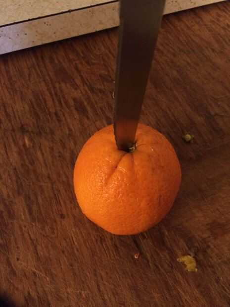 Uso de la marca de cuchillo un agujero en el centro de la naranja, de dentro o fuera de él.