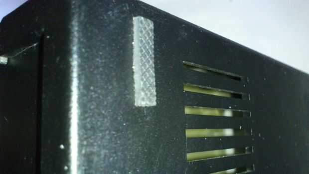 Taladre un agujero por la parte superior de la caja y me pegue una pieza de plástico transparente azul para ver la luz.