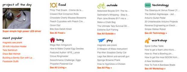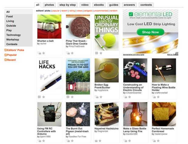 explorar en la Página principal, en la parte superior. Esto le permite explorar muchos muchos otros proyectos, en áreas como alimentos, vida, juego, tecnología, ect. ¿Demasiados proyectos para mirar? Bueno, usted también puede utilizar otras opciones de búsqueda para ver selecciones del editor, proyectos populares, proyectos recientes y más vistos. ¿Todavía no está seguro de qué hacer? Es por eso que tienen concursos. Justo al lado de la opción de explorar es la opción de