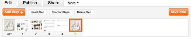 Reordenar pasos . Esto le permite colocar sus pasos en el orden que necesita estar en. Si usted siente un paso tiene poco uso o simplemente ocupa un espacio, pulse el botón de