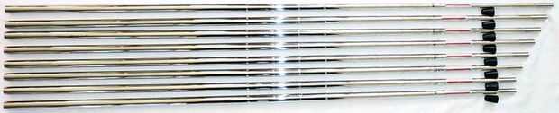 - 8 ejes (grafito o acero, su elección). 8 te hará un conjunto 4-SW. (no se usa un hierro 3 ya). Asegúrese de que su tamaño de punta de eje coincide con el tipo de jefes que va a utilizar (es decir.370 ejes para.370 hosel llevaba en la cabeza).