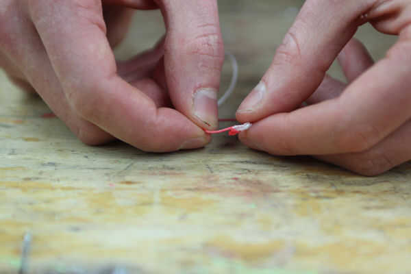 -Hacer una forma de sombrero básico usando la mitad de un paquete de sugru rojo, luego aplanarlo.